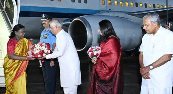 ByStaff ReporterOctober 22, 2025തിരുവനന്തപുരം: നാലു ദിവസത്തെ സന്ദർശനത്തിന് രാഷ്ട്രപതി ദ്രൗപദി മുർമു കേരളത്തിലെത്തി. വ്യോമസേനയുടെ പ്രത്യേക വിമാനത്തിൽ വൈകിട്ട് ആറരയോടെയാണ് രാഷ്ട്രപതി തിരുവനന്തപുരത്ത് എത്തിയത്. രാഷ്ട്രപതിയെ ഗവർണർ രാജേന്ദ്ര ആർലേക്കർ, മുഖ്യമന്ത്രി പിണറായി വിജയൻ,...