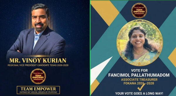 ByStaff ReporterMarch 28, 2026ഷുഗർലാൻഡ് : അമേരിക്കൻ ഐക്യനാടുകളിലെ സംഘടനകളുടെ സംഘടനയായ ഫൊക്കാനയുടെ 2026 -28 കാലത്തേക്കുള്ള തിരഞ്ഞെടുപ്പ് മാമാങ്കത്തിന് അങ്കത്തട്ട് ഒരുങ്ങിക്കഴിഞ്ഞു. അമേരിക്കൻ മലയാളികളുടെ സാമൂഹിക ജീവിതത്തിൽ നിർണായക ഇടപെടലുകൾ നടത്തുന്ന ഒരു മഹാ...