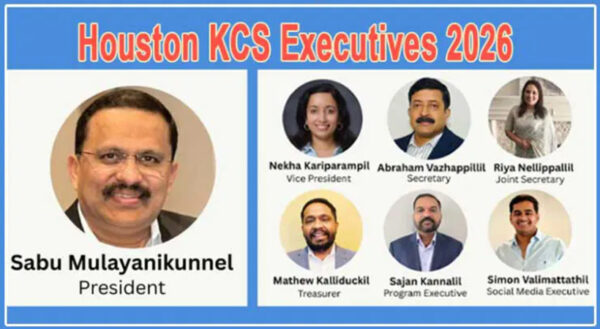ByStaff ReporterDecember 29, 2025ഹൂസ്റ്റൺ: ഹൂസ്റ്റണിലെ ക്നാനായ സമുദായത്തെ അർപ്പണ ബോധത്തോടെ സേവിക്കുന്നതിന് സാമൂഹിക പ്രതിബദ്ധതയുള്ളവരുടെ പുതിയ ടീം നിയോഗിക്കപ്പെട്ടു. ഹൂസ്റ്റൺ ക്നാനായ കാത്തലിക് സൊസൈറ്റിയുടെ (എച്ച്.കെ.സി.എസ്) 2026 ഭരണ സമിതിയുടെ പ്രസിഡൻ്റായി സാബു ജോസഫ്...