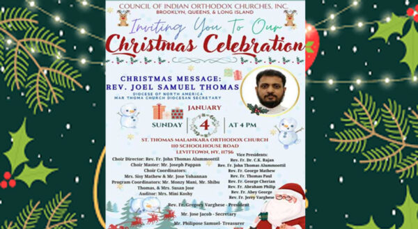 ByStaff ReporterDecember 23, 2025ന്യൂയോർക്ക്: ബ്രൂക്ക്ലിൻ, ക്വീൻസ്, ലോംഗ് ഐലൻഡ് മേഖലകളിലെ ഇന്ത്യൻ ഓർത്തഡോക്സ് സഭകളെ ഏകോപിപ്പിക്കുന്ന കൗൺസിൽ ഓഫ് ഇന്ത്യൻ ഓർത്തഡോക്സ് ചർച്ചസ് (CIOC) നേതൃത്വത്തിൽ വിപുലമായ ക്രിസ്മസ് ആഘോഷം സംഘടിപ്പിക്കുന്നു. ജനുവരി 4-ാം...