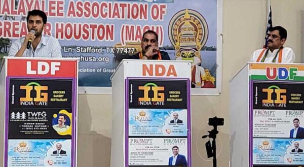 ByStaff ReporterApril 3, 2026ഹൂസ്റ്റൺ: 2026-ലെ കേരള നിയമസഭാ തിരഞ്ഞെടുപ്പിന് മുന്നോടിയായി അമേരിക്കയിലെ ഹൂസ്റ്റണിൽ സംഘടിപ്പിച്ച ‘അങ്കത്തട്ട് @അമേരിക്ക’ രാഷ്ട്രീയ സംവാദം പ്രവാസി മലയാളികൾക്കിടയിൽ വലിയ ആവേശം സൃഷ്ടിച്ചു. മലയാളി അസോസിയേഷൻ ഓഫ് ഗ്രെയ്റ്റർ ഹൂസ്റ്റണും...