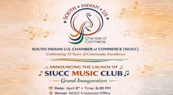 ByStaff ReporterApril 3, 2026ഹൂസ്റ്റൺ: പ്രമുഖ പ്രവാസി വ്യവസായ കൂട്ടായ്മയായ സൗത്ത് ഇന്ത്യൻ യു.എസ്. ചേംബർ ഓഫ് കൊമേഴ്സ് (SIUCC) തങ്ങളുടെ പ്രവർത്തനങ്ങളുടെ 15-ാം വാർഷികാഘോഷങ്ങളുടെ ഭാഗമായി പുതിയ ‘മ്യൂസിക് ക്ലബ്’ ആരംഭിക്കുന്നു. കലയിലൂടെയും സംഗീതത്തിലൂടെയും...
