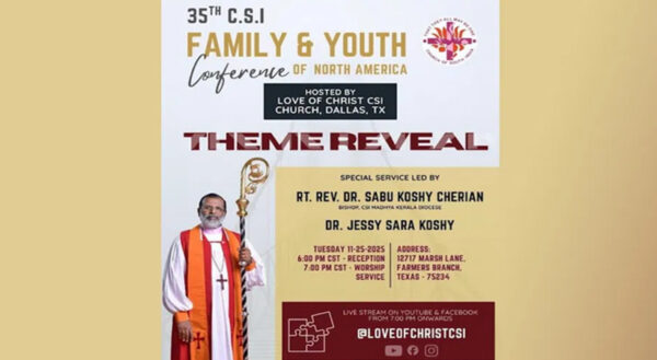 ByStaff ReporterNovember 24, 2025ഡാളസ്: വടക്കേ അമേരിക്കയിലെ 35-ാമത് സി.എസ്.ഐ കുടുംബ-യുവജന സമ്മേളന തീം പ്രകാശനം നവംബർ 25 നു ഡാളസ്സിൽ നടക്കും, തീം പ്രകാശന (THEME REVEAL) പ്രത്യേക ശുശ്രൂഷയ്ക്ക് നേതൃത്വം നൽകുന്നത്:അതിവന്ദ്യ ഡോ....