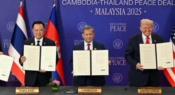 ByStaff ReporterOctober 28, 2025ക്വാലലംപുർ : ഏഷ്യയിൽ ത്രിരാഷ്ട്ര സന്ദർശനത്തിനെത്തിയ യുഎസ് പ്രസിഡന്റ് ഡോണൾഡ് ട്രംപിനെ സാക്ഷിയാക്കി തായ്ലൻഡും കംബോഡിയയും സമാധാന കരാർ ഒപ്പിട്ടു. അതിർത്തി തർക്കത്തിൽ തുടങ്ങി പൊടുന്നനെ വിപുലമായ കംബോഡിയ – തായ്ലൻഡ്...