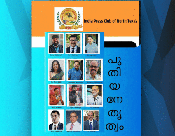 Byപി പി ചെറിയാൻOctober 11, 2025ഡാളസ്: രണ്ടു ദശാബ്ദങ്ങളായി മാധ്യമ പ്രവർത്തനരംഗത്ത് സജീവ സാന്നിധ്യമായി നിലകൊള്ളുന്നഇന്ത്യാ പ്രസ് ക്ലബ് ഓഫ് നോർത്ത് ടെക്സസ് (IPCNT) അടുത്ത രണ്ടു വർഷത്തെ ഭാരവാഹികളായി പ്രസിഡൻറ് സണ്ണി മാളിയേക്കൽ, വൈസ് പ്രസിഡണ്ട്...