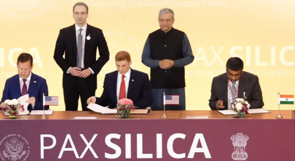 ByStaff ReporterFebruary 20, 2026ന്യൂഡൽഹി: വിവിധ മേഖലകളിലെ സുരക്ഷിതവിതരണ ശൃംഖല ശക്തിപ്പെടുത്തുന്നതിനായി രൂപവത്കരിച്ച തന്ത്രപ്രധാന പാക്സ സിലിക്ക കൂട്ടായ്മയിൽ ഇന്ത്യ അംഗമായി. പാക്സ് സിലിക്കയുടെ ഔദ്യോഗികപ്രഖ്യാപനത്തിൽ ഇന്ത്യ വെള്ളിയാഴ്ച ഒപ്പുവെച്ചു. നിർണായക ധാതുക്കൾ, അർധചാലകങ്ങൾ (semiconductors),...
