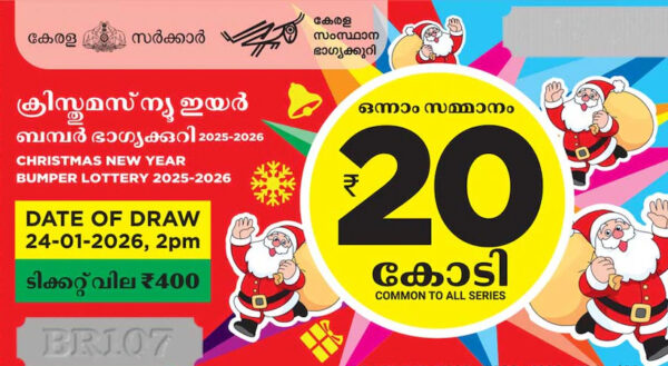 ക്രിസ്മസ്–പുതുവത്സര ലോട്ടറിയുടെ ഒന്നാം സമ്മാനം ലഭിച്ച ടിക്കറ്റ് നഷ്ടപ്പെട്ടതായി പരാതി; ടിക്കറ്റ് സമർപ്പിച്ച് മറ്റൊരാൾ