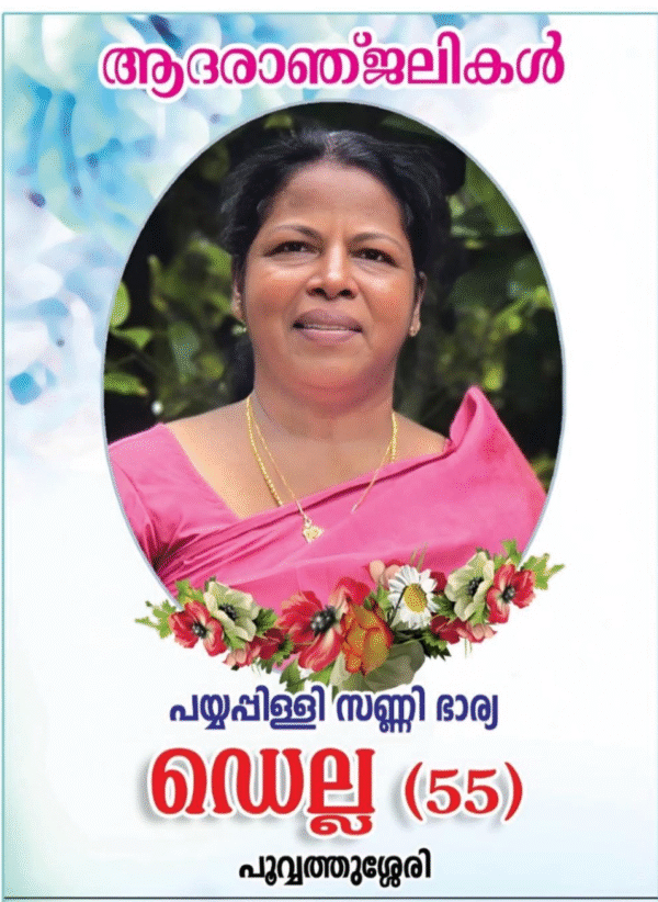 ByStaff ReporterNovember 1, 2025പൂവ്വത്തുശ്ശേരി: പയ്യപ്പിള്ളി സണ്ണി ഭാര്യ ഡെല്ല (55) നിര്യാതയായി. എറണാകുളം ജില്ലയിലെ പൂവ്വത്തുശ്ശേരി നിവാസിയായിരുന്നു.സംസ്കാര ശുശ്രൂഷ: 2025 നവംബർ 2 വ്യാഴാഴ്ച വൈകുന്നേരം 3.30-ന് പൂവ്വത്തുശ്ശേരി സെന്റ് ജോസഫ് ചർച്ചിൽ വച്ച്...
