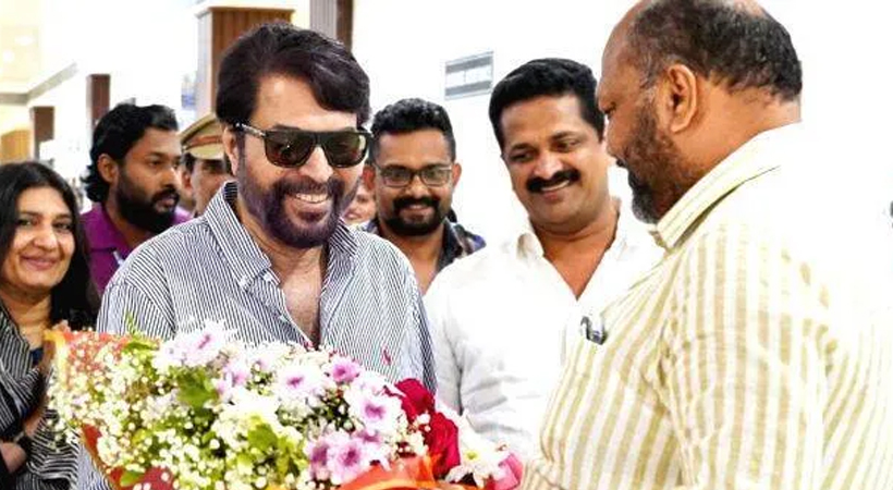നെടുമ്പാശേരി വിമാനത്താവളത്തിലെത്തിയ മമ്മൂട്ടിയെ സ്വീകരിക്കാൻ വ്യവസായ മന്ത്രി പി. രാജീവ്, അൻവർ സാദത്ത് എംഎൽഎ എന്നിവർ എത്തി. വിമാനത്താവളത്തിനു പുറത്തെത്തിയ ആരാധകരോടും മാധ്യമപ്രവർത്തകരോടും താരം പുഞ്ചിരിയോടെ കൈവീശി അഭിവാദ്യം ചെയ്തു.