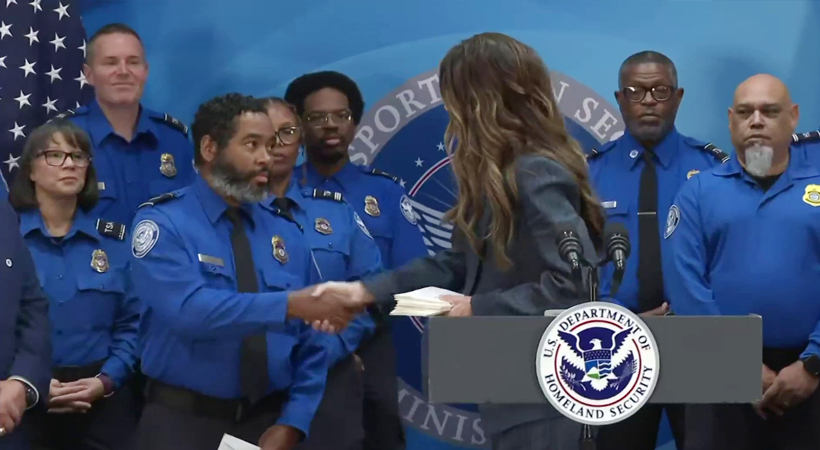 ന്യൂയോർക്ക്: ഷട്ട്ഡൗൺ സമയത്ത് 43 ദിവസത്തോളം സേവനമനുഷ്ഠിച്ച TSA (Transportation Security Administration) ഉദ്യോഗസ്ഥർക്കുള്ള $10,000 ബോണസ് പ്രഖ്യാപിച്ചു. ഹോംലാൻഡ് സെക്യൂരിറ്റി സെക്രട്ടറി ക്രിസ്റ്റി നോം ഈ പ്രഖ്യാപനം ജോർജ് ബുഷ് ഇന്റർകോണിനന്റൽ എയർപോർട്ടിൽ നടത്തിയ പ്രസംഗത്തിലാണ് നടത്തിയത്.