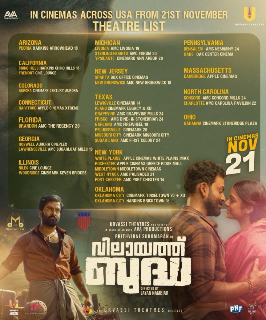 നാട്ടിലെ തിയേറ്ററുകളിൽ മികച്ച അഭിപ്രായം നേടി മുന്നേറുന്ന ചിത്രം അമേരിക്കൻ മലയാളികൾക്കും ഒരു വേറിട്ട അനുഭവമായിരിക്കും നൽകുക. ടിക്കറ്റുകൾ മുൻകൂട്ടി ബുക്ക് ചെയ്യാനുള്ള സൗകര്യം അതത് തിയേറ്റർ വെബ്സൈറ്റുകളിൽ ലഭ്യമാണ്.