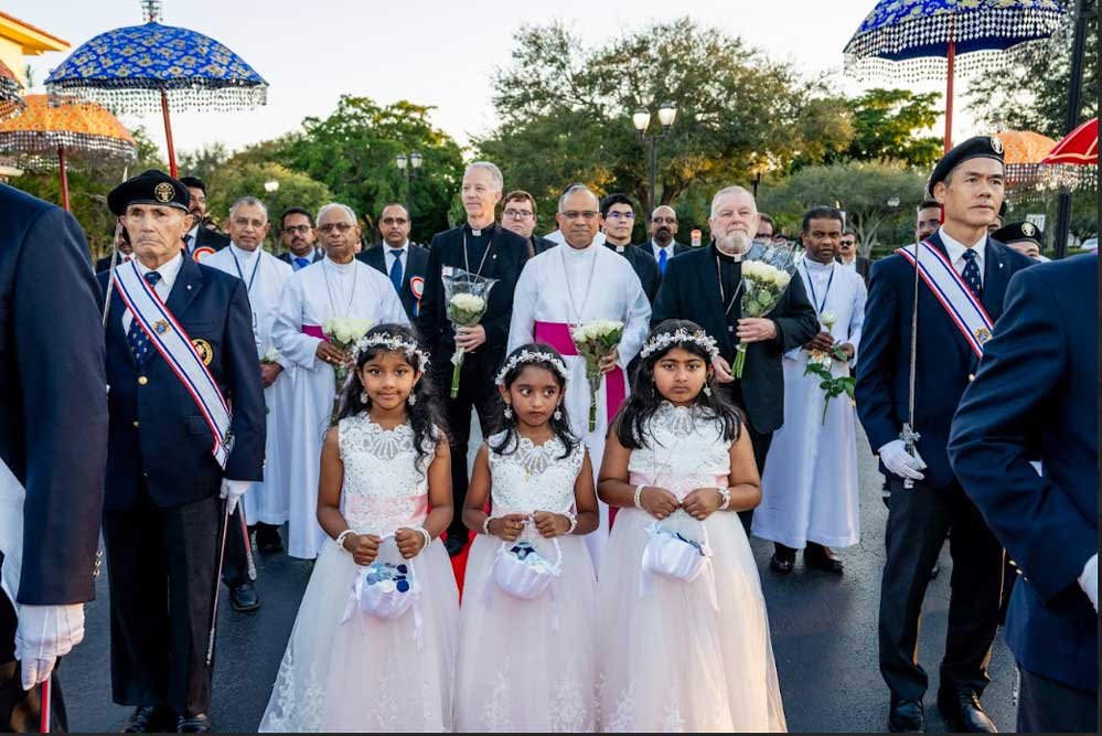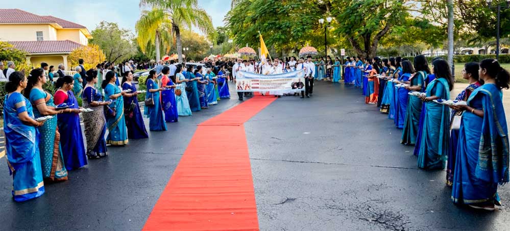 നവംബർ 18-ആം തിയതി ചൊവ്വാഴ്ച വയ്ക്ക്ന്നേരം അഞ്ചുമണിക്ക് കോറൽ സ്പ്രിങ്സ് സെൻറ് എലിസബത്ത് ആൻ സെറ്റൺ കാത്തലിക് ചർച്ച് മൈതാനത്ത് എത്തിച്ചേർന്ന മയാമി ആർച്ച് ബിഷപ്പ് തോമസ് വെൻസ്കി, അമേരിക്കൻ ബിഷപ്പ് കോൺഫ്രൻസ് അംഗവും പെൻസിക്കോള ബിഷപ്പുമായ വില്യം എ വാക്ക്, ചിക്കാഗോ സീറോ മലബാർ രൂപതാദ്ധ്യക്ഷൻ ബിഷപ്പ് ജോയ് ആലപ്പാട്ട്, ചിക്കാഗോ രൂപതയുടെ പ്രഥമ മെത്രാൻ ബിഷപ്പ് എമിററ്റസ്, ബിഷപ്പ് ജേക്കബ് അങ്ങാടിയത്ത്, വികാർ ജനറൽമാരായ ഫാ:ജോണ് മേലേപ്പുറം, ഫാ:തോമസ് കടുകപ്പള്ളി എന്നിവരോടൊപ്പം അതിഥികളായി എത്തിയ നൂറ്റി അൻപത് വൈദികരേയും കേരള തനിമയുടെ പാരമ്പര്യം ഉണർത്തുന്ന താലപ്പൊലിയും, മുത്തുക്കുടകളും, ചെണ്ടവാദ്യങ്ങളുടേയും അകമ്പടിയോടെ, ചുവപ്പ് പരവതാനിയിലൂടെ നൈറ്റ് ഓഫ് കൊളംബസിന്റെ ഗാർഡ് ഓഫ് ഓണർ ഏറ്റുവാങ്ങി ദേവാലയത്തിലേക്ക് ഘോഷയാത്രയായി ആനയിച്ചു.