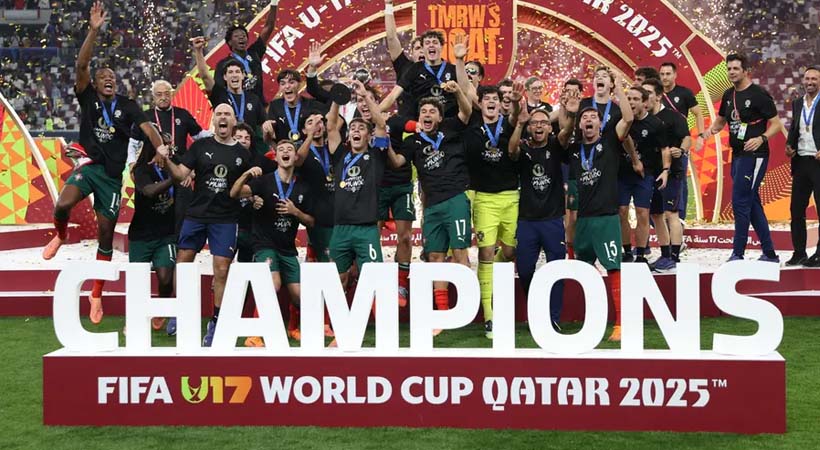 ദോഹ: ഓസ്ട്രിയയെ ഏകപക്ഷീയമായ ഒരു ഗോളിന് തോല്പ്പിച്ച് പോര്ച്ചുഗല് ഫിഫ അണ്ടര്-17 ലോകകപ്പ് കിരീടം സ്വന്തമാക്കി. പോര്ച്ചുഗലിന്റെ ആദ്യത്തെ അണ്ടര്-17 കിരീടമാണിത്. 48 രാജ്യങ്ങള് പങ്കെടുത്ത ടൂര്ണ്ണമെന്റില് ആദ്യ മൂന്ന് സ്ഥാനങ്ങളും യൂറോപ്യന് ടീമുകള് നേടി.