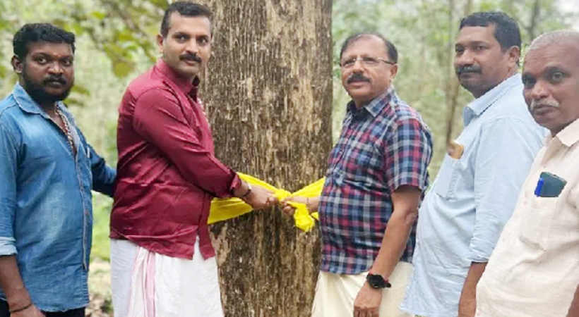 തേക്ക് മരം വെട്ടുന്നതിനുമുമ്പ് ആവശ്യമായ അനുമതിയും അനുഗ്രഹവും തേടി 28-11-2025ന് നടത്തിയ ചടങ്ങിന്റെ ദൃശ്യങ്ങളാണിവ.