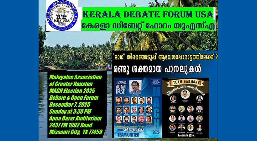ഉണ്ടായിരിക്കുമെന്ന് കേരള ഡിബേറ്റ് ഫോറം യുഎസ്എ അറിയിച്ചു.