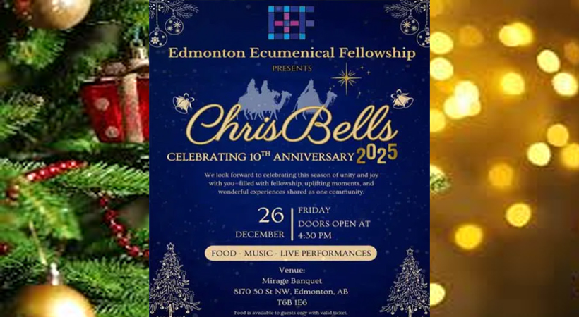എഡ്മിന്റൻ : നഗരത്തിലെ വിവിധ ക്രൈസ്തവ സഭകളുടെ ഐക്യവേദിയായ എഡ്മിന്റൻ എക്യുമെനിക്കൽ ഫെലോഷിപ്പ് (ഇ.ഇ.എഫ്) പത്താം വാർഷികം ആഘോഷിക്കുന്നു. ആഘോഷങ്ങളുടെ ഭാഗമായി സംഘടിപ്പിക്കുന്ന വാർഷിക ക്രിസ്മസ് സംഗമം ‘ക്രിസ്ബെൽസ്’ ഡിസംബർ 26-ന് വൈകുന്നേരം നാലര മുതൽ എഡ്മിന്റൻ മിറേജ് ബാങ്ക്വറ്റ് ഹാളിൽ (8170 50 St NW, Edmonton, AB T6B 1E6) നടക്കും. ഫോർട്ട് സസ്കാച്വാൻ എം.പി ഗാർനെറ്റ് ജീനിയസ് ആഘോഷങ്ങൾ ഉദ്ഘാടനം ചെയ്യും. ഫെലോഷിപ്പിന്റെ പുതിയ വെബ്സൈറ്റ് പ്രകാശനവും ചടങ്ങിൽ അദ്ദേഹം നിർവ്വഹിക്കും. എഡ്മിന്റൻ എക്യുമെനിക്കൽ ഫെലോഷിപ്പ് പ്രസിഡൻ്റ് റവ. തോമസ് പൂതിയോട്ട് ക്രിസ്മസ് സന്ദേശം നൽകും.