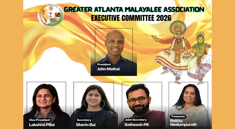 അറ്റ്ലാന്റ : നോർത്ത് അമേരിക്കയിലെ പ്രമുഖ മലയാളി സംഘടനകളിലൊന്നായ ഗ്രെയ്റ്റർ അറ്റ്ലാന്റ മലയാളീ അസോസിയേഷൻ (ഗാമ) 2026 വർഷത്തേക്കുള്ള പുതിയ ഭരണസമിതിയെ തെരഞ്ഞെടുത്തു. ഡിസംബർ 13-ന് നടന്ന വാർഷിക പൊതുയോഗത്തിൽ, ജോൺ മത്തായിയുടെ നേതൃത്വത്തിലുള്ള പതിമൂന്നു അംഗ എക്സിക്യൂട്ടീവ് കമ്മിറ്റിയെ എതിരില്ലാതെ തിരഞ്ഞെടുക്കുകയുണ്ടായി.