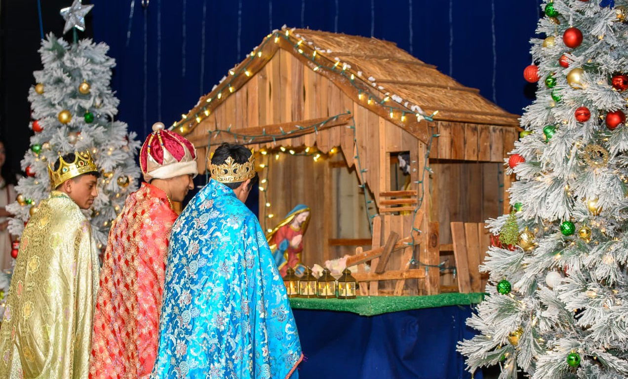 മാലാഖയിൽ നിന്നും മേരിക്കു ലഭിച്ച സദ്വാർത്തയെ തുടർന്ന് പരിഭ്രാന്തനായ ജോസഫിനു നിദ്രയിൽ ലഭിക്കുന്ന ദൈവീകദർശനം, പ്രസവസമയമടുത്ത മേരി കുട്ടിക്കുജന്മം നൽകുന്നതിനായി ജോസഫിനൊപ്പം സത്രങ്ങളിൽ മുട്ടുന്നതും, എല്ലാവരാലും തിരസ്കരിക്കപ്പെട്ട് അവസാനം കാലിത്തൊഴുത്തിൽ ഉണ്ണിയേശുവിനു ജന്മം നൽകുന്നതും, തത്സമയം വിണ്ണിലെ മാലാഖമാർ മന്നിലിറങ്ങി ആനന്ദനൃത്തമാടുന്നതും, നിദ്രയിൽ മാലാഖയുടെ നിർദ്ദേശം ലഭിച്ച ആട്ടിടയന്മാർ പിള്ളക്കച്ചയിൽ പൊതിഞ്ഞു കിടത്തിയിരുന്ന ഉണ്ണിയെ ആരാധിച്ച് ആനന്ദനൃത്തം ചെയ്യുന്നതും, ആകാശത്തിലെ നക്ഷത്രം വഴികാട്ടിയതനുസരിച്ച് മൂന്നുരാജാക്കന്മാർ വന്നു പുൽക്കൂട്ടിൽ ജാതനായ ഉണ്ണിയെ ആരാധിച്ചു കാഴ്ച്ചകൾ സമർപ്പിച്ചു സന്തോഷം പങ്കിടുന്നതും വളരെ നാടകീയമായി കുട്ടികൾ അവതരിപ്പിച്ചു.