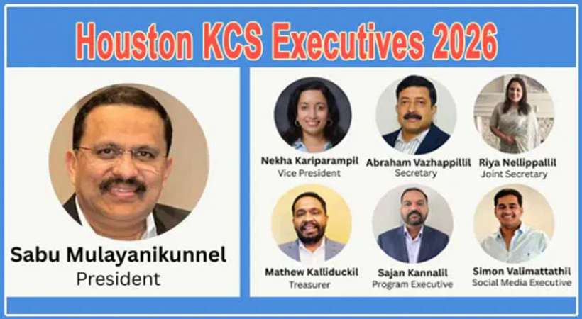 ഹൂസ്റ്റൺ: ഹൂസ്റ്റണിലെ ക്നാനായ സമുദായത്തെ അർപ്പണ ബോധത്തോടെ സേവിക്കുന്നതിന് സാമൂഹിക പ്രതിബദ്ധതയുള്ളവരുടെ പുതിയ ടീം നിയോഗിക്കപ്പെട്ടു. ഹൂസ്റ്റൺ ക്നാനായ കാത്തലിക് സൊസൈറ്റിയുടെ (എച്ച്.കെ.സി.എസ്) 2026 ഭരണ സമിതിയുടെ പ്രസിഡൻ്റായി സാബു ജോസഫ് മുളയാനിക്കുന്നേലും വൈസ് പ്രസിഡന്റ്റായി നേഖ മാത്യു കരിപ്പറമ്പിലും തിരഞ്ഞെടുക്കപ്പെട്ടു.