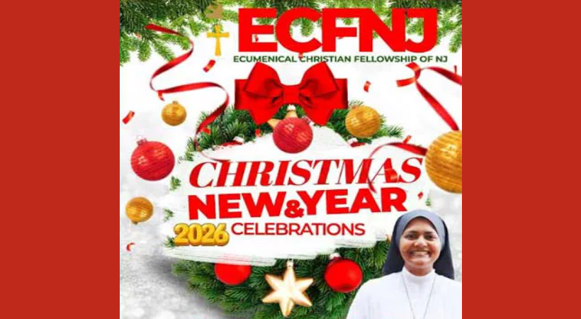 ന്യൂജേഴ്സി: ന്യൂജേഴ്സിയിലെ വിവിധ ക്രൈസ്തവ സഭകളുടെ കൂട്ടായ്മയായ എക്യുമെനിക്കൽ ക്രിസ്ത്യൻ ഫെലോഷിപ്പിന്റെ ആഭിമുഖ്യത്തിൽ ക്രിസ്തുമസ്- പുതുവത്സര ആഘോഷം ജനുവരി 17 ശനിയാഴ്ച മിഡ്ലാൻഡ് പാർക്ക് സെൻ്റ് സ്റ്റീഫൻസ് ഓർത്തഡോക്സ് പള്ളിയുടെ ഓഡിറ്റോറിയത്തിൽ വച്ച് നടത്തപ്പെടും. ന്യൂജേഴ്സിയിലും പരിസരപ്രദേശങ്ങളിലും ഉള്ള വിവിധ കത്തോലിക്കാ, മാർത്തോമാ, യാക്കോബായ, ഓർത്തഡോക്സ്, സി എസ് ഐ, ഇവാഞ്ചലിക്കൽ സഭകളുടെ നേതൃത്വത്തിലാണ് ഈ വർഷത്തെ പ്രോഗ്രാം അണിഞ്ഞൊരുങ്ങുന്നത്.