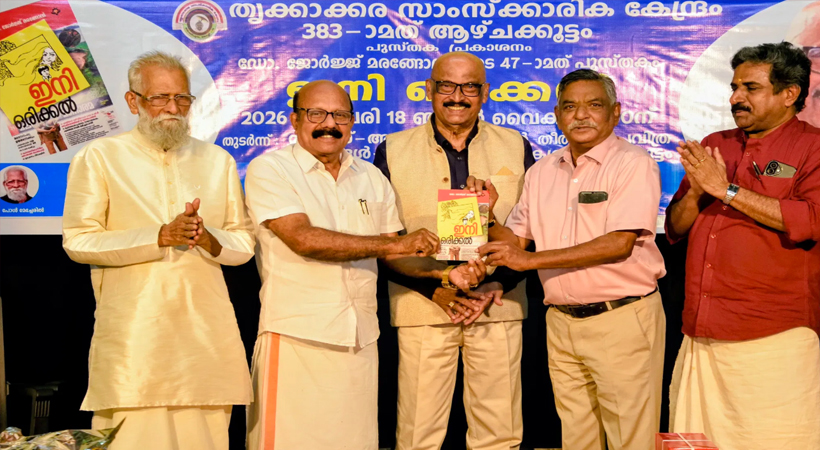 കൊച്ചി: ഡോ. ജോര്ജ് മരങ്ങോലിയുടെ 47 – മത് പുസ്തകം ‘ ഇനി ഒരിക്കല്,’ (ചെറുകഥാസമാഹാരം) തൃക്കാക്കര സാംസ്കാരിക കേന്ദ്രത്തിന്റെ 383- മത് ആഴ്ചക്കൂട്ടത്തില്, ഓണം പാര്ക്കില് വച്ച് പ്രകാശനം ചെയ്തു.