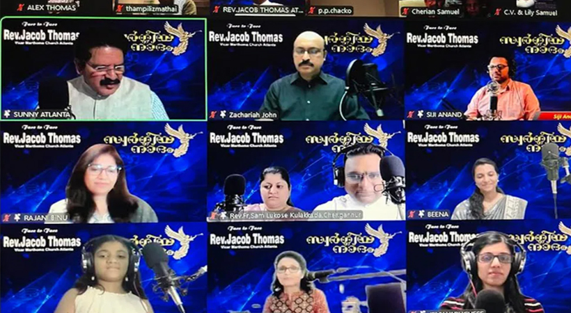 അറ്റ്ലാന്റ: പ്രശസ്ത ഗായകനും വരികളെഴുത്തുകാരനുമായ അറ്റ്ലാന്റ മാർത്തോമാ ചർച്ച് വികാരി റവ. ജേക്കബ് തോമസ് (ആനിക്കാട് അച്ചൻ) നയിച്ച ‘ഫേസ് ടു ഫേസ്’ ലൈവ് സ്ട്രീമിംഗ് സംഗീത നിശ ഭക്തിസാന്ദ്രമായി സമാപിച്ചു.സ്വർഗീയ നാദം കൂട്ടായ്മ ജനുവരി 25 ഞായറാഴ്ച വൈകിട്ട് നടന്ന പരിപാടിയിൽ ലോകത്തിന്റെ വിവിധ ഭാഗങ്ങളിൽ നിന്നുള്ള സംഗീതപ്രേമികൾ സൂം (Zoom) പ്ലാറ്റ്ഫോമിലൂടെ പങ്കെടുത്തു.
