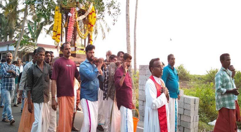 പള്ളിപ്പെരുന്നാളിനായി പണം പിരിക്കുന്നതും നോട്ടീസ് അച്ചടിക്കുന്നതും മുതൽ റാസയിൽ തിരുരൂപം തോളിൽ ചുമക്കുന്നതും കുർബാന കേൾക്കാൻ ഇരിക്കുന്നതും പ്രദേശത്തെ ഹിന്ദുക്കളാണ്. കരയോഗം അങ്കണത്തിൽനിന്ന് വൻ ജനാവലി അണിനിരന്ന് ആരംഭിക്കുന്ന