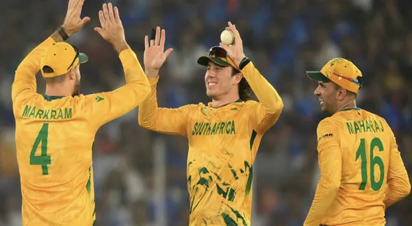 എയ്ഡന് മാര്ക്രം 4(7), ക്വിന്റണ് ഡി കോക്ക് 6(7), റയാന് റിക്കിള്ടണ് 7(7) എന്നിവര് പെട്ടെന്ന് പുറത്തായി. നാലോവറില് 20ന് മൂന്ന് എന്ന നിലയില് തകര്ച്ചയെ അഭിമുഖീകരിച്ചതിന് ശേഷമാണ് പ്രോട്ടീസ് ഭേദപ്പെട്ട സ്കോര് കണ്ടെത്തിയത്. നാലാം വിക്കറ്റില് ഡിവാള്ഡ് ബ്രെവിസ് 45(29) ഡേവിഡ് മില്ലര് 63(35) സഖ്യം 97 റണ്സാണ് 50 പന്തുകളില് നിന്ന് അടിച്ചെടുത്തത്. ശിവം ദൂബെയുടെ ഓവറില് ബ്രെവിസ് പുറത്തായതോടെയാണ് ഈ കൂട്ടുകെട്ട് പൊളിഞ്ഞത്.