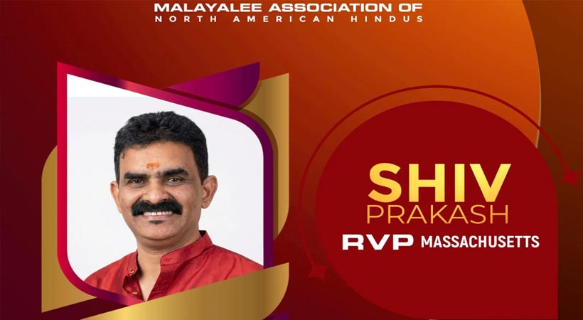ബോസ്റ്റൺ മലയാളി സമൂഹത്തിൽ സജീവ സാന്നിധ്യമായ ശിവ പ്രകാശ്, മന്ത്ര (Malayalee Association of North American Hindus) ബോസ്റ്റൺ റീജിയണൽ വൈസ് പ്രസിഡന്റായി ചുമതലയേറ്റതായി സംഘടന ഔദ്യോഗികമായി അറിയിച്ചു.