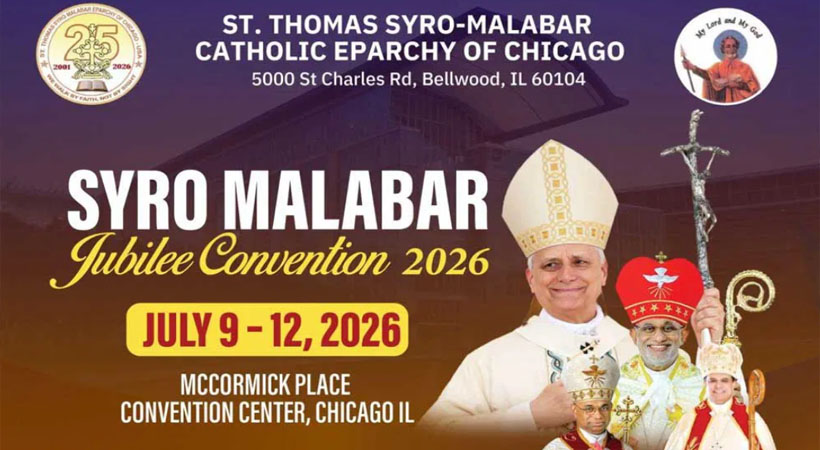 ചിക്കാഗോ: ചിക്കാഗോ സെന്റ് തോമസ് സീറോ മലബാർ രൂപതയുടെ രജതജൂബിലി ആഘോഷങ്ങളുടെ ഭാഗമായി സംഘടിപ്പിക്കുന്ന ‘സീറോ മലബാർ ജൂബിലി കൺവെൻഷൻ 2026’ ജൂലൈ മാസത്തിൽ നടക്കും. ചിക്കാഗോയിലെ പ്രശസ്തമായ മക്കോർമിക് പ്ലേസ് കൺവെൻഷൻ സെന്ററാണ് (McCormick Place) ഈ മഹാസംഗമത്തിന്വേദിയാകുന്നത്.2026 ജൂലൈ 9 മുതൽ 12 വരെ നടക്കുന്ന ഈ സംഗമത്തിൽ മുഖ്യ ആകർഷണമായി പ്രശസ്ത ദൈവശാസ്ത്രജ്ഞനും ഗ്രന്ഥകാരനും വാഗ്മിയുമായ ഡോ. എഡ്വേർഡ് ശ്രീ (Dr. Edward Sri) മുഖ്യപ്രഭാഷണം നടത്തും.