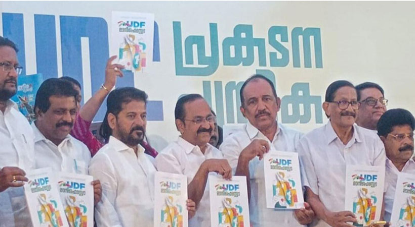കൊച്ചി∙ ഇന്ദിര ഗ്യാരന്റി ഉറപ്പാക്കി യുഡിഎഫിന്റെ പ്രകടന പത്രിക തെലുങ്കാന മുഖ്യമന്ത്രി രേവന്ത് റെഡി പുറത്തിറക്കി. കേരളം ജയിക്കും യുഡിഎഫ് നയിക്കും എന്നതുതന്നെയാണ് യുഡിഎഫ് മുന്നോട്ടുവയ്ക്കുന്ന മുദ്രാവാക്യം.