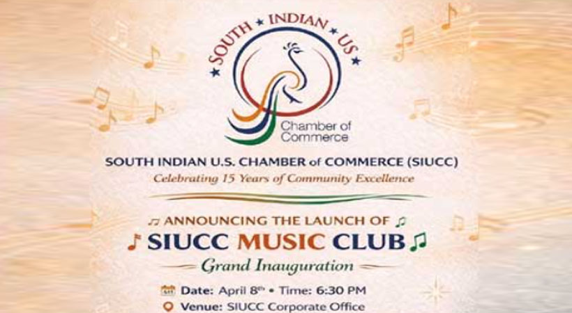 ഹൂസ്റ്റൺ: പ്രമുഖ പ്രവാസി വ്യവസായ കൂട്ടായ്മയായ സൗത്ത് ഇന്ത്യൻ യു.എസ്. ചേംബർ ഓഫ് കൊമേഴ്സ് (SIUCC) തങ്ങളുടെ പ്രവർത്തനങ്ങളുടെ 15-ാം വാർഷികാഘോഷങ്ങളുടെ ഭാഗമായി പുതിയ ‘മ്യൂസിക് ക്ലബ്’ ആരംഭിക്കുന്നു. കലയിലൂടെയും സംഗീതത്തിലൂടെയും കമ്മ്യൂണിറ്റിയെ ഒന്നിപ്പിക്കുക, വ്യവസായികൾ ഉൾപ്പെടുന്ന മലയാളി സമൂഹത്തിന് മാനസികവും ആത്മീയവുമായ ഉന്മേഷം പകരുകയും നിത്യ ജീവിതത്തിലെ സമ്മർദ്ദം കുറയ്ക്കുക എന്ന ലക്ഷ്യത്തോടെയുമാണ് ഈ സംരംഭത്തിന് തുടക്കം കുറിക്കുന്നത്.