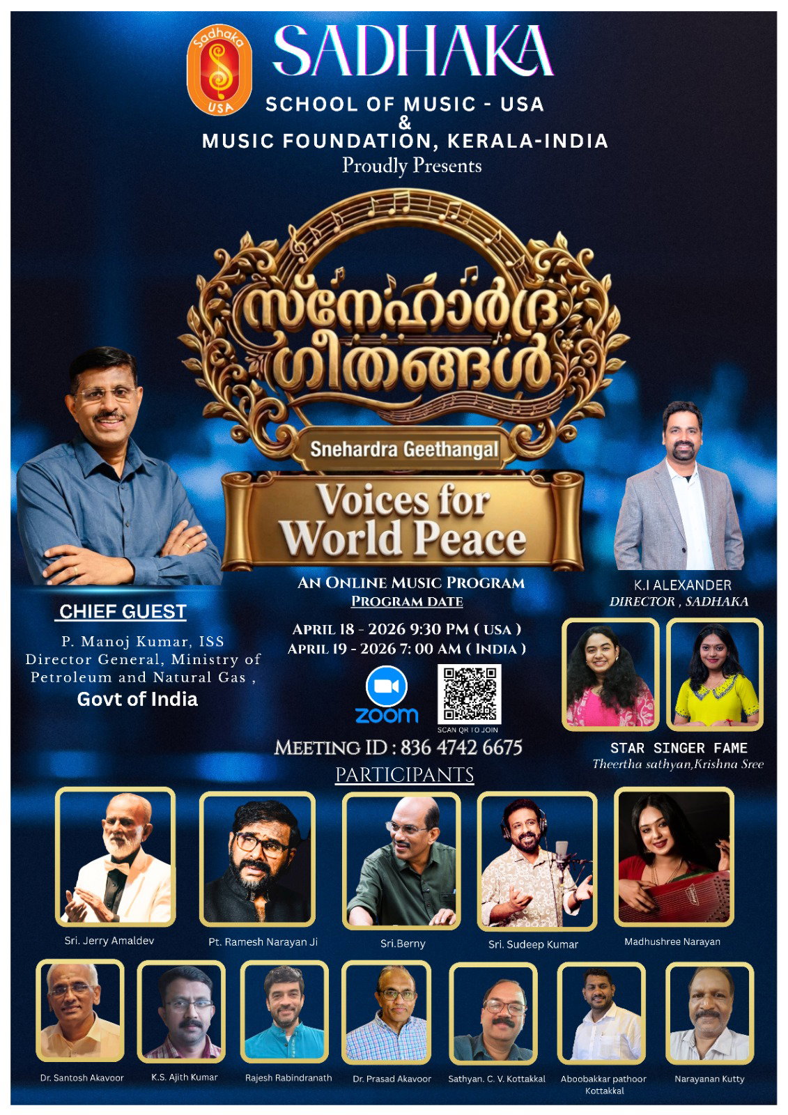 *സൂം (Zoom) പ്ലാറ്റ്ഫോമിലൂടെയാണ് ഈ ഓണ്ലൈന് സംഗീത വിരുന്ന് നടക്കുക.
