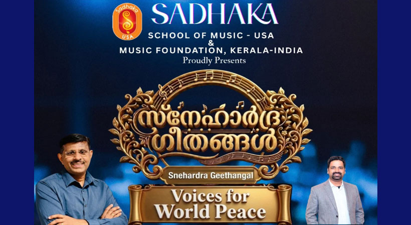 ന്യൂയോര്ക്ക് : യുദ്ധങ്ങളും സംഘര്ഷങ്ങളും കലുഷിതമാക്കുന്ന ലോകത്തിന് സമാധാനത്തിന്റെ സന്ദേശം പകര്ന്നുനല്കാന് സംഗീതവുമായി ‘സാധക’ മ്യൂസിക് ഫൗണ്ടേഷന്. ന്യൂയോര്ക്ക് ആസ്ഥാനമായി പ്രവര്ത്തിക്കുന്ന സാധക സ്കൂള് ഓഫ് മ്യൂസിക്കും, കേരളത്തിലെ സാധക മ്യൂസിക് ഫൗണ്ടേഷനും സംയുക്തമായി സംഘടിപ്പിക്കുന്ന ‘സ്നേഹാര്ദ്ര ഗീതങ്ങള് – വോയിസസ് ഫോര് വേള്ഡ് പീസ്’ (Voices for World Peace) എന്ന ഓണ്ലൈന് സംഗീത പരിപാടി ഏപ്രില് 18, 19 തീയതികളില് നടക്കും.