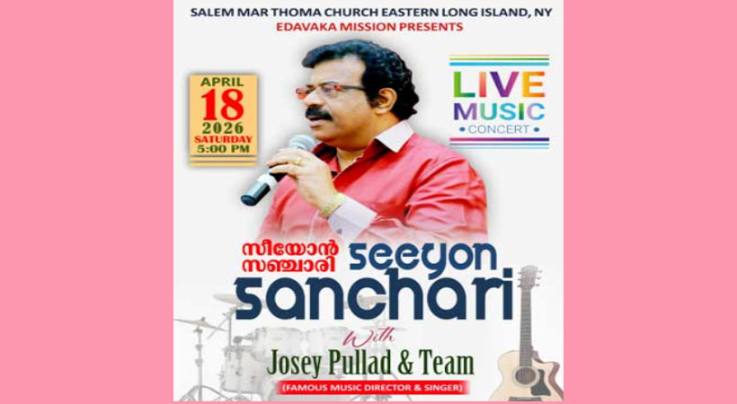 ഈ ആത്മീയ സംഗീതപരമ്പരയുടെ 53- എഡിഷൻ ഏപ്രിൽ 18 ശനിയാഴ്ച വൈകുന്നേരം 5 മണിക്ക് ഈസ്റ്റേൺ ലോങ്ങ് ഐലന്റിലുള്ള ശാലേം മാർത്തോമാ പള്ളിയിൽ വച്ച് നടത്തപ്പെടും.ആത്മീയ സംഗീതസാന്നിധ്യം സൃഷ്ടിക്കുന്ന ഈ പ്രത്യേക സന്ധ്യ, വിശ്വാസികൾക്ക് ഒരുമിച്ച് ആരാധനാനുഭവത്തിൽ പങ്കുചേരാനുള്ള ഒരു വിലപ്പെട്ട അവസരമായി മാറും.
