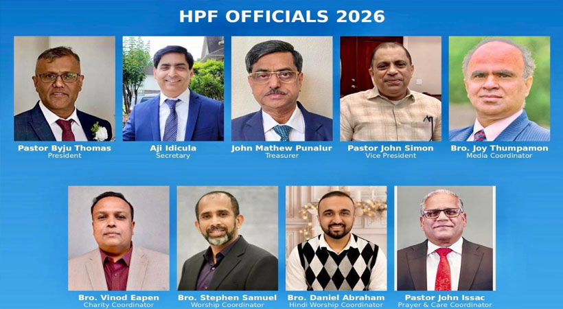 ഹൂസ്റ്റണ്: ഹൂസ്റ്റണ് പെന്തെക്കോസ്തു ഫെലോഷിപ്പിന്റെ 2026 ലെ ഭാരവാഹികളെ ജനറല് ബോഡി തിരഞ്ഞെടുത്തു. ഹൂസ്റ്റണിലും പരിസരങ്ങളിലുമുള്ള; ഉപദേശ ഐക്യമുള്ള 16 സഭകളുടെ ഐക്യവേദിയാണ് ഈ സംഘടന. കഴിഞ്ഞ 30 വര്ഷമായി അനുഗ്രഹമായി ഇത് പ്രവര്ത്തിക്കുന്നു. പൊതുമീറ്റിംഗുകള്; ഫാമിലി സെമിനാറുകള്; വിവിധ ഭാഷകളിലുള്ള ആരാധനകളും പൊതുമീറ്റിംഗുകളും, വിശിഷ്യ ഹിന്ദിയിലുള്ള മീറ്റിംഗുകള്, പാസ്റ്റര്മാര്ക്ക്കും ലീഡേര്സിനും വേണ്ടിയുള്ള ഏകദിന സെമിനാറുകള്, വാര്ഷീക കണ്വന്ഷനും പൊതു ആരാധനയും, മാസം തോറുമുള്ള പ്രാര്ത്ഥന മീറ്റിംഗുകള് തുടങ്ങിയ, ആത്മീയ ഐക്യത്തിനും വര്ദ്ധനവിനു മീറ്റിംഗുകള് എല്ലാ വര്ഷവും നടക്കുന്നു.