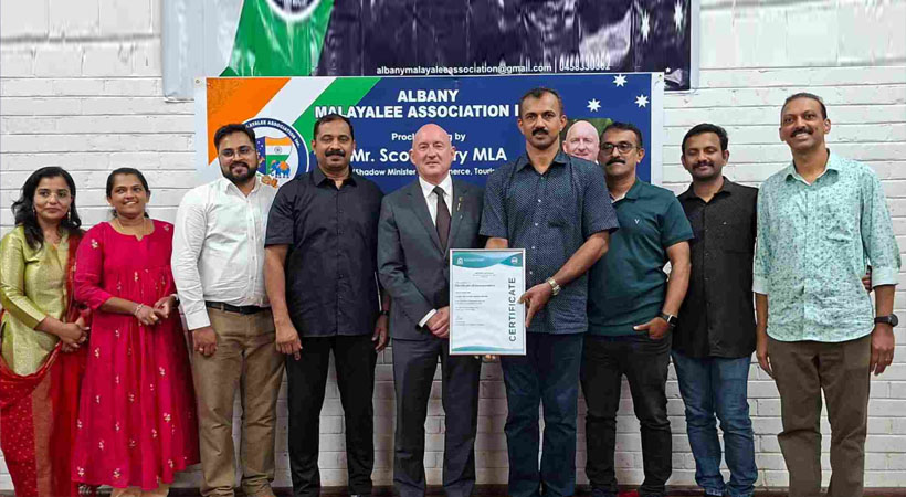 അൽബനി (ആസ്ട്രേലിയ) : പ്രാദേശിക മലയാളി സമൂഹത്തിന് അഭിമാനകരമായ ഒരു നിമിഷമായി Albany Malayalee Association Inc. (AMA) ഔദ്യോഗികമായി പ്രഖ്യാപിക്കപ്പെട്ടു.